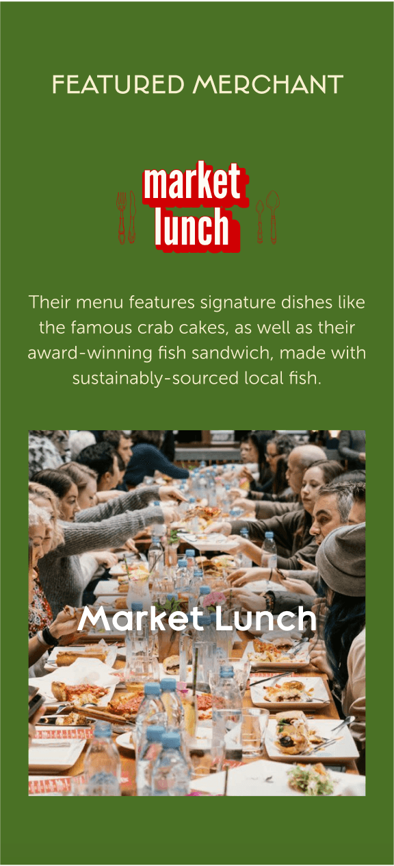 The final iteration had the featured merchants/ merchant events highlighted at only the top and bottom row. This was cleaner and easier to look through.